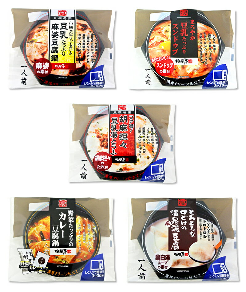 その点、この「ひとり鍋シリーズ」は、麻婆豆腐鍋・スンドゥブ・胡麻担々豆乳湯とうふ・カレー豆腐鍋・温泉風湯豆腐の5つ鍋がそれぞれ一人分。