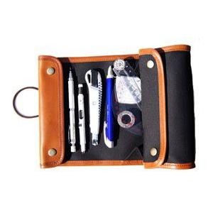 横幅は20cm近くありそうな大きなペンケースは、ボックス状になっているペンケース部分をロール状に巻いて収納してあるデザインが特徴的です。