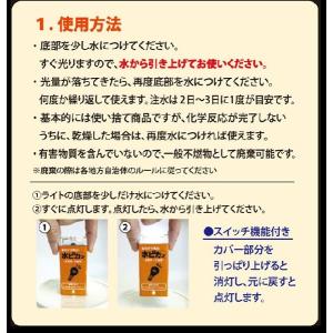 基本的には使い捨てのライトですが、その光は、水分を補給できれば、約1週間光り続けるようです。