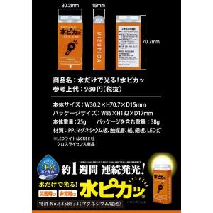 この水ピカッは、底の部分を少し水につけると、すぐ光る懐中電灯。